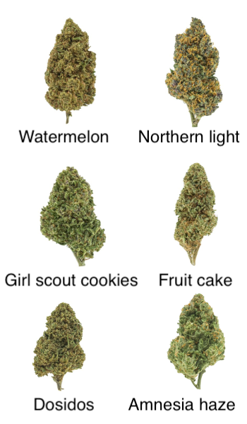 Prøv vores prøvepakke, den indeholder 6 forskellige strains af blomst, af 1,5 gram hver.