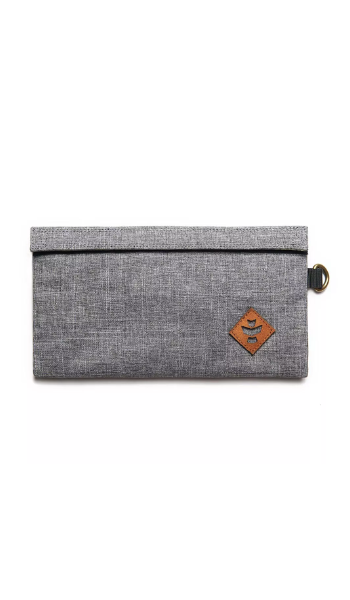 Enkeltlomme, lugtsikker taske, perfekt til sikker opbevaring af dit indhold. Måler 28 x 12 cm og fås i stilfuld grå eller sort.